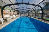 בריכת שחייה ענקית מחוממת ומקורה. |