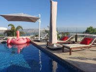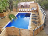 בריכת שחייה מפנקת, מיטת שיזוף, מדשאה, מנגל, ספסלים, תאורה רומנטית צבעונית לשעות הערב, פינת ישיבה. |